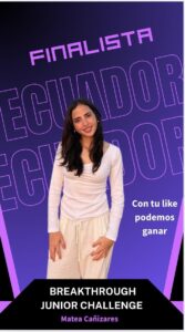 Matea Cañizares, estudiante del JK, entre las 30 semifinalistas mundiales del Breakthrough Junior Challenge
